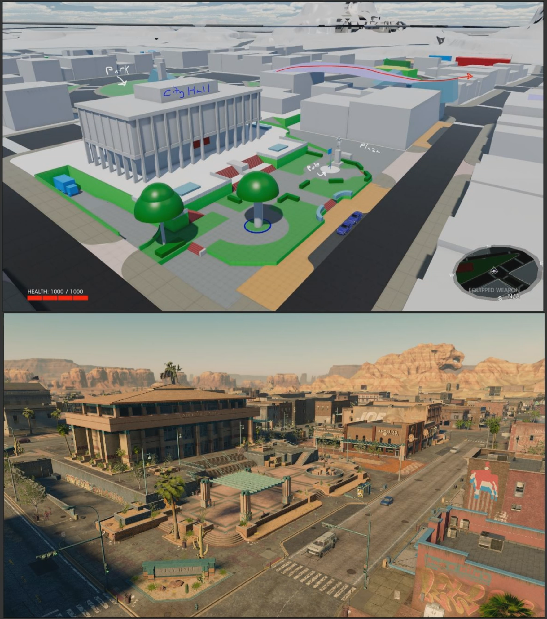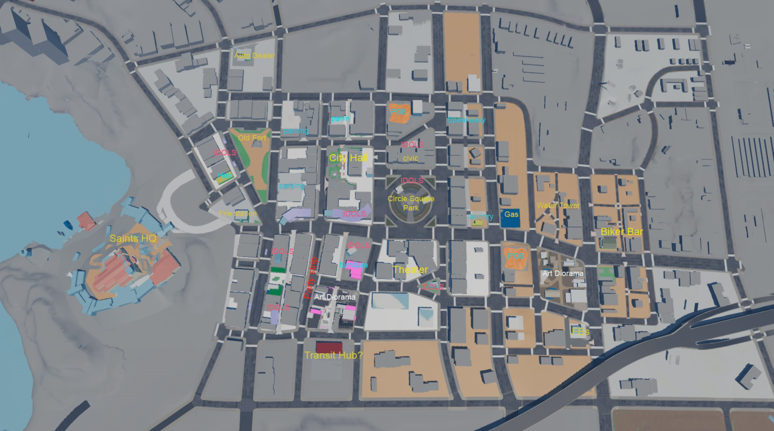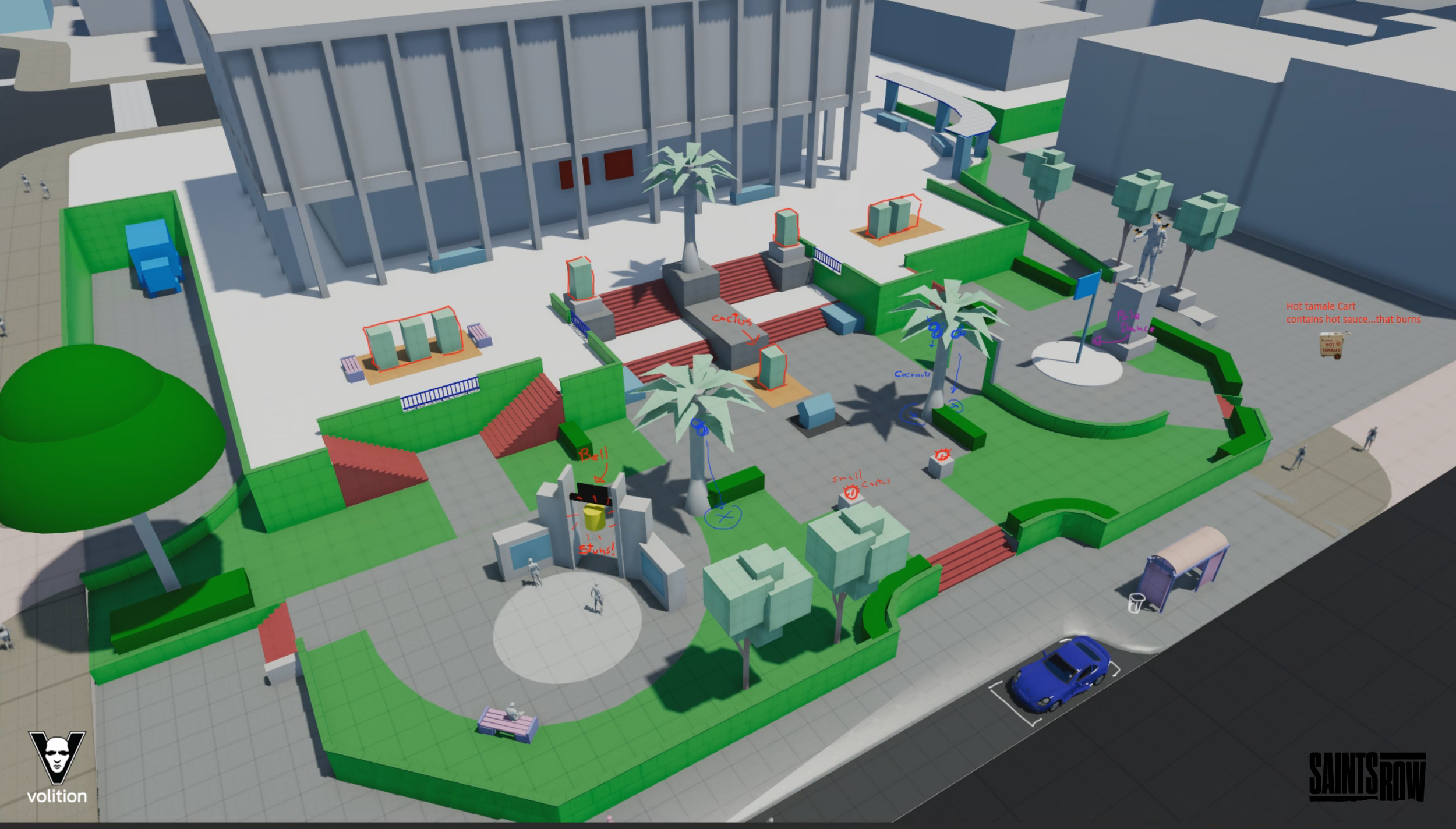 Using Volition’s in-house City Planner tools I’d quickly create playable district in a few hours. Get feedback, iterate, gather more info, draw another map, and repeat.