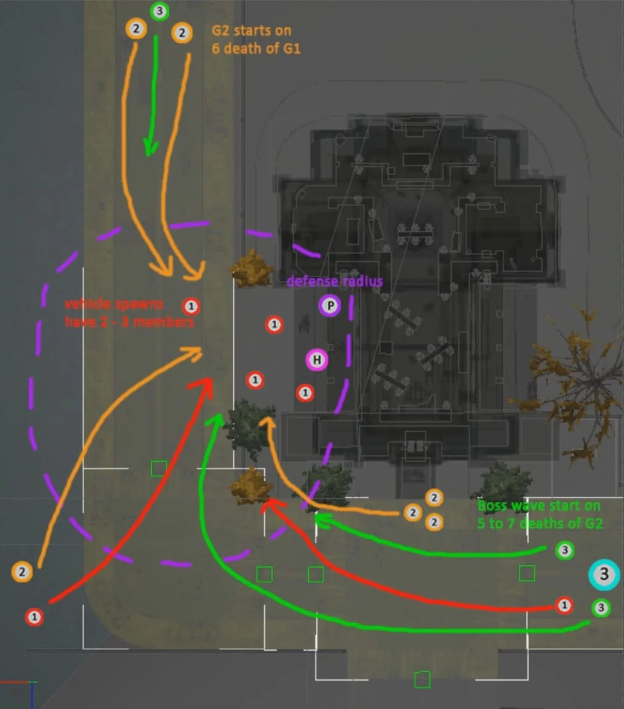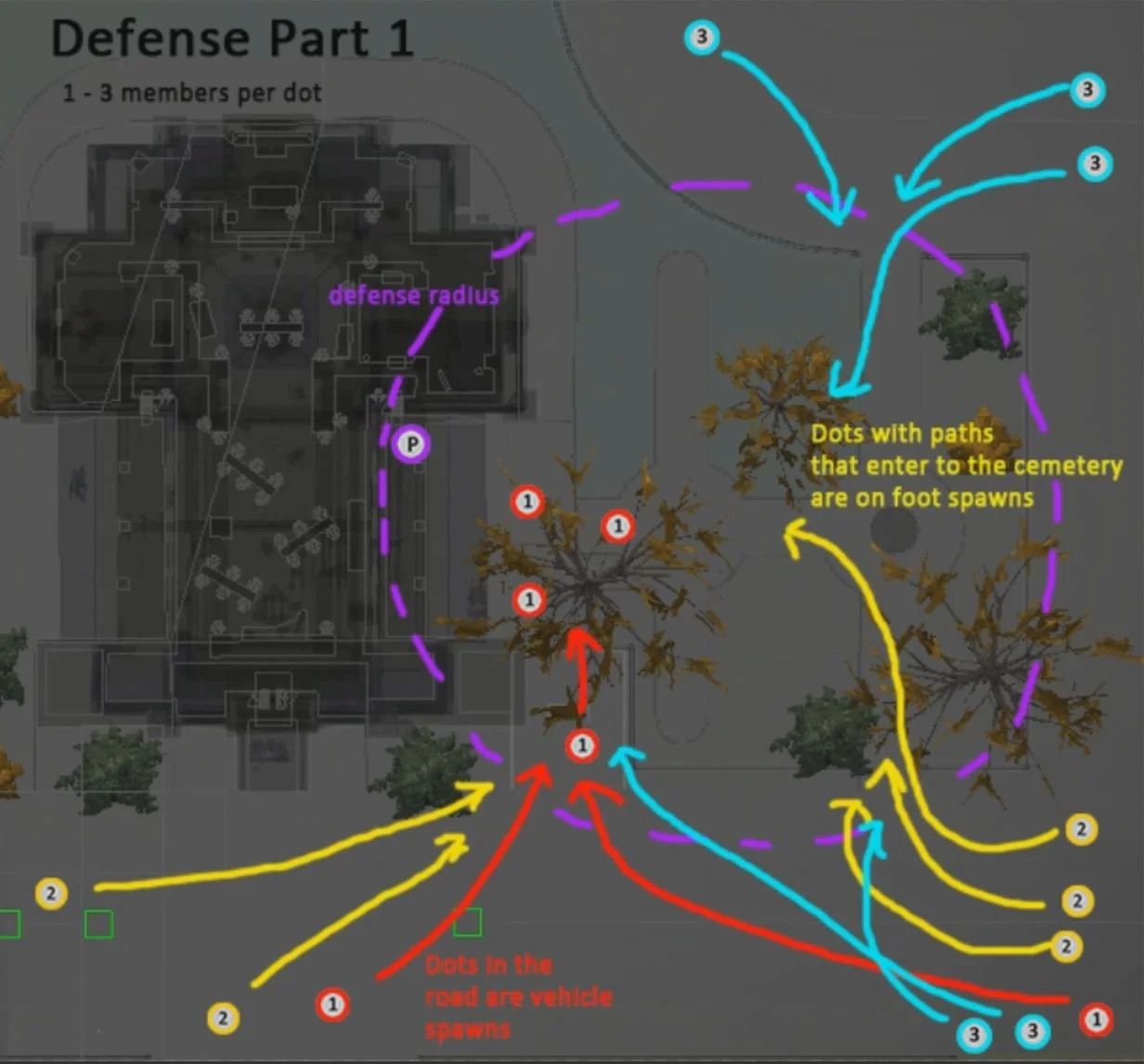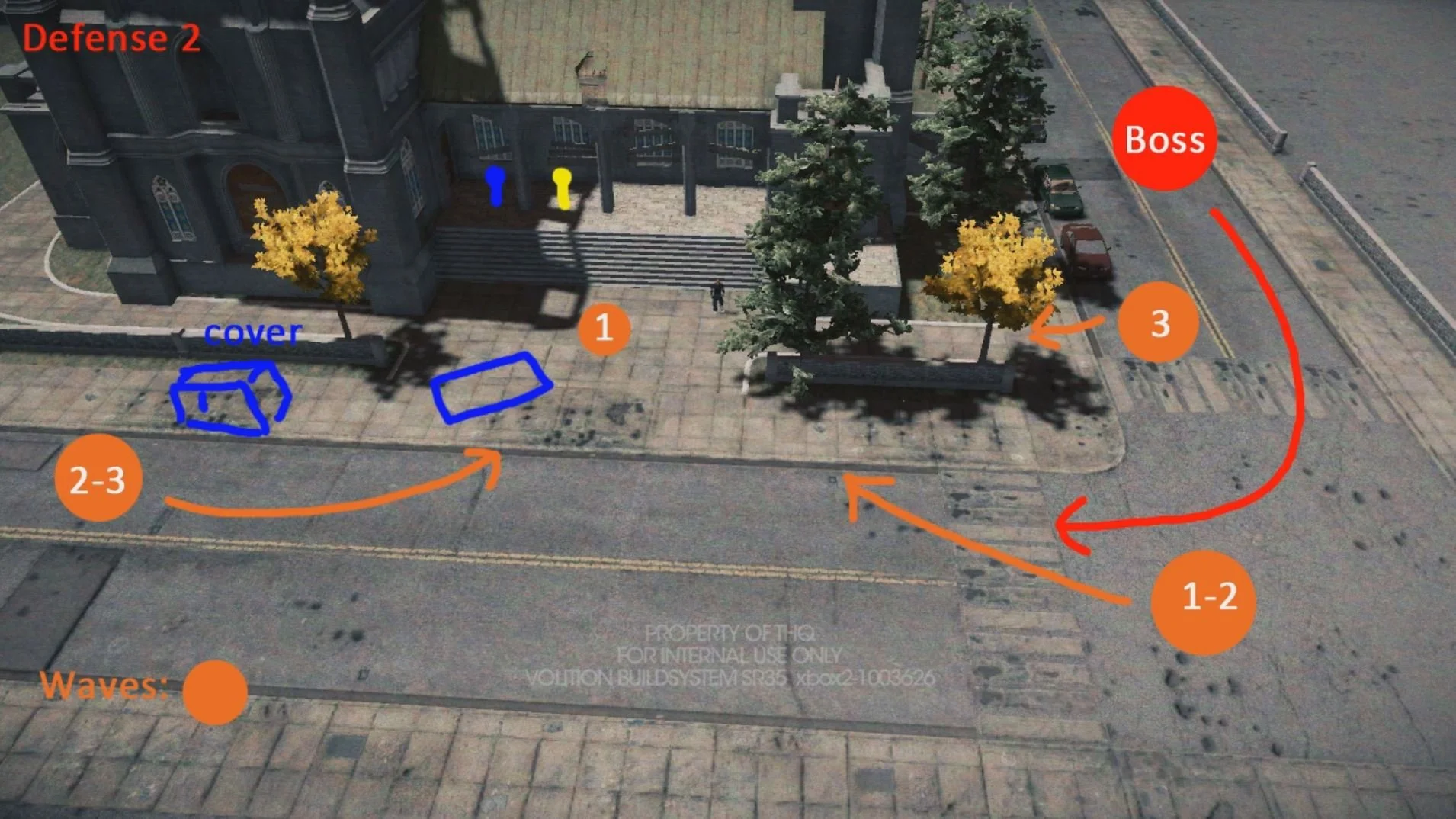 Battle Plan Church graveyard: After meeting up with Ben King, the person they can to rescue, the player is directed to the graveyard of the church. This shows the order of enemy waves and how they arrive