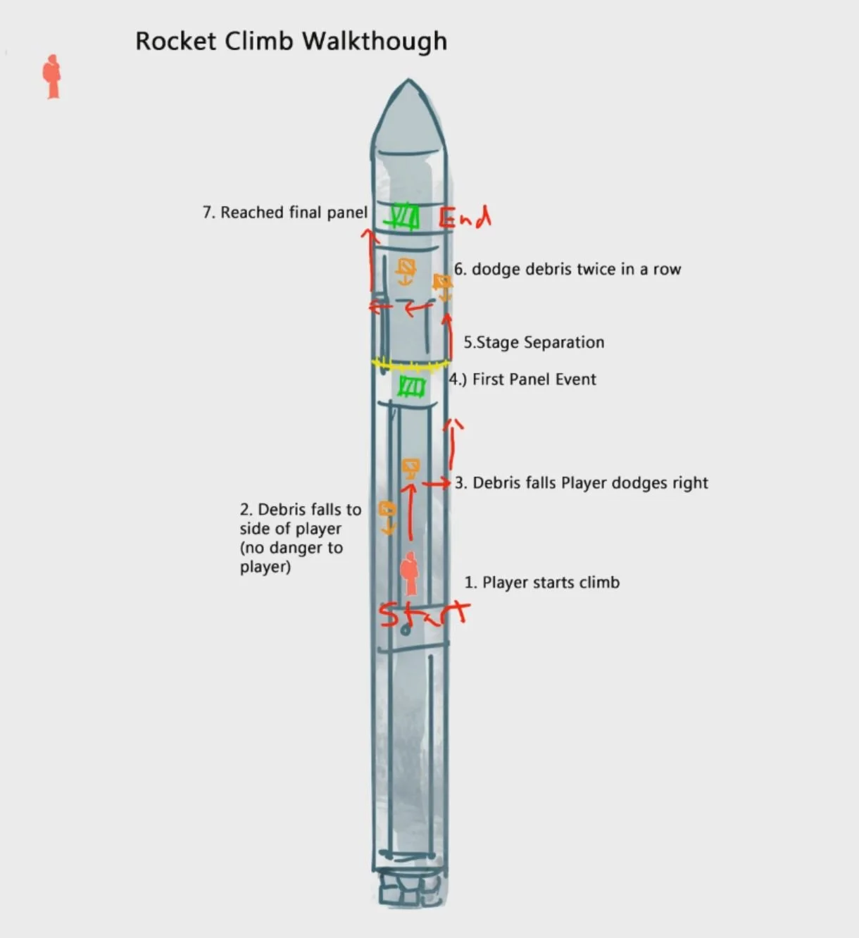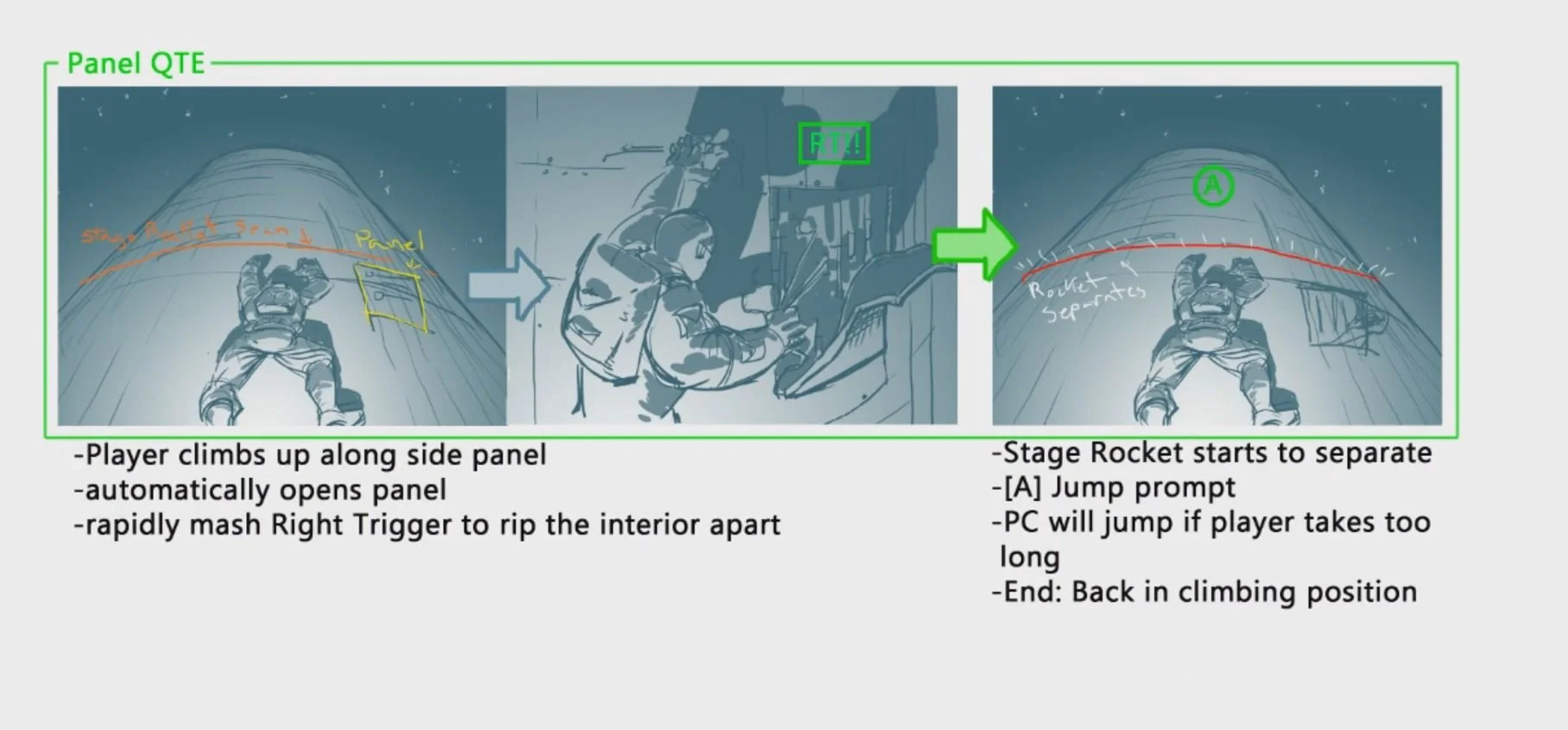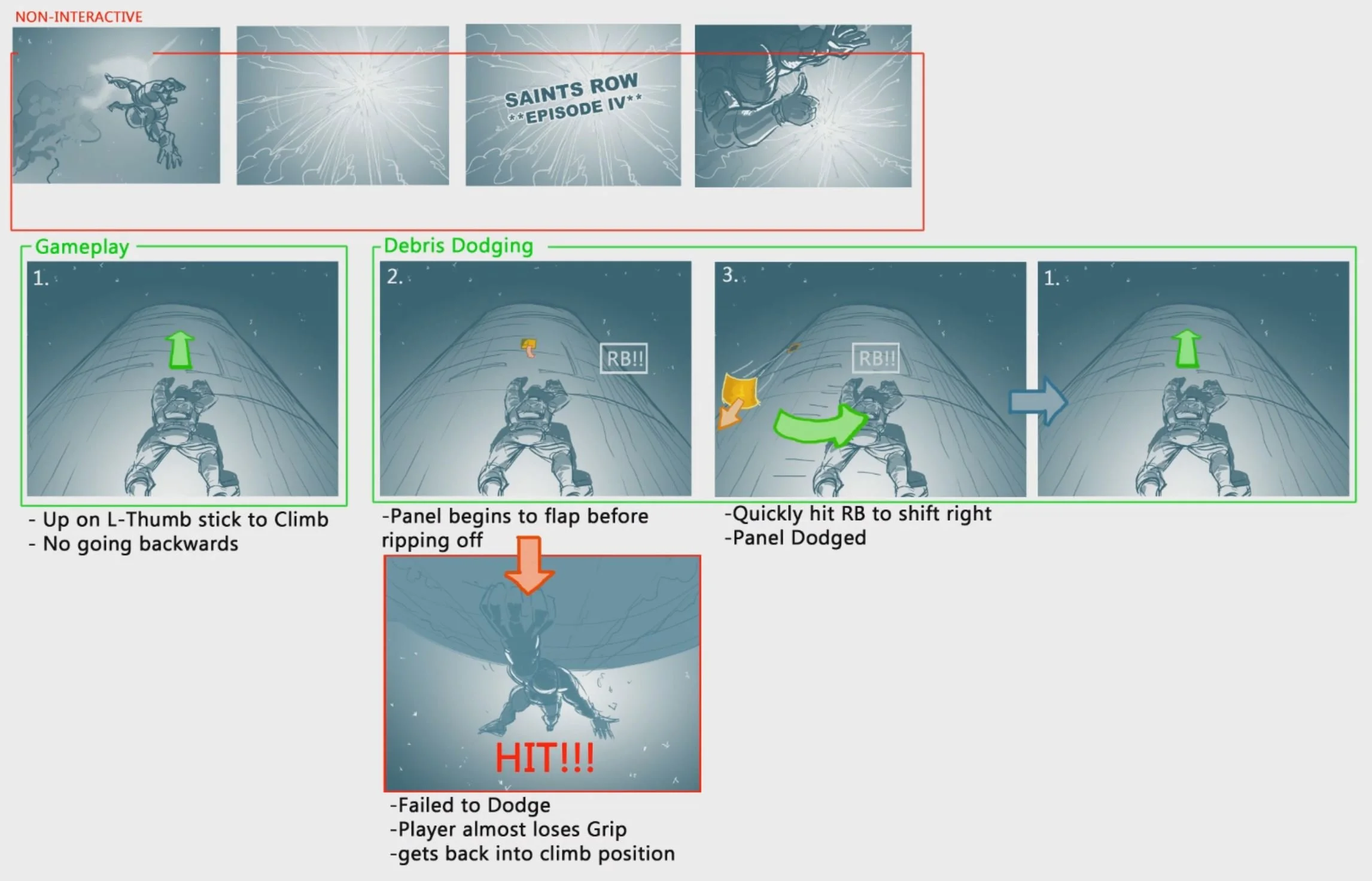 SR4 Mission 0 - Climbing the rocket sequence. I worked with a Storyboard plan out the sequence. I drew over to explain how the player climbs the rocket and QTEs involved