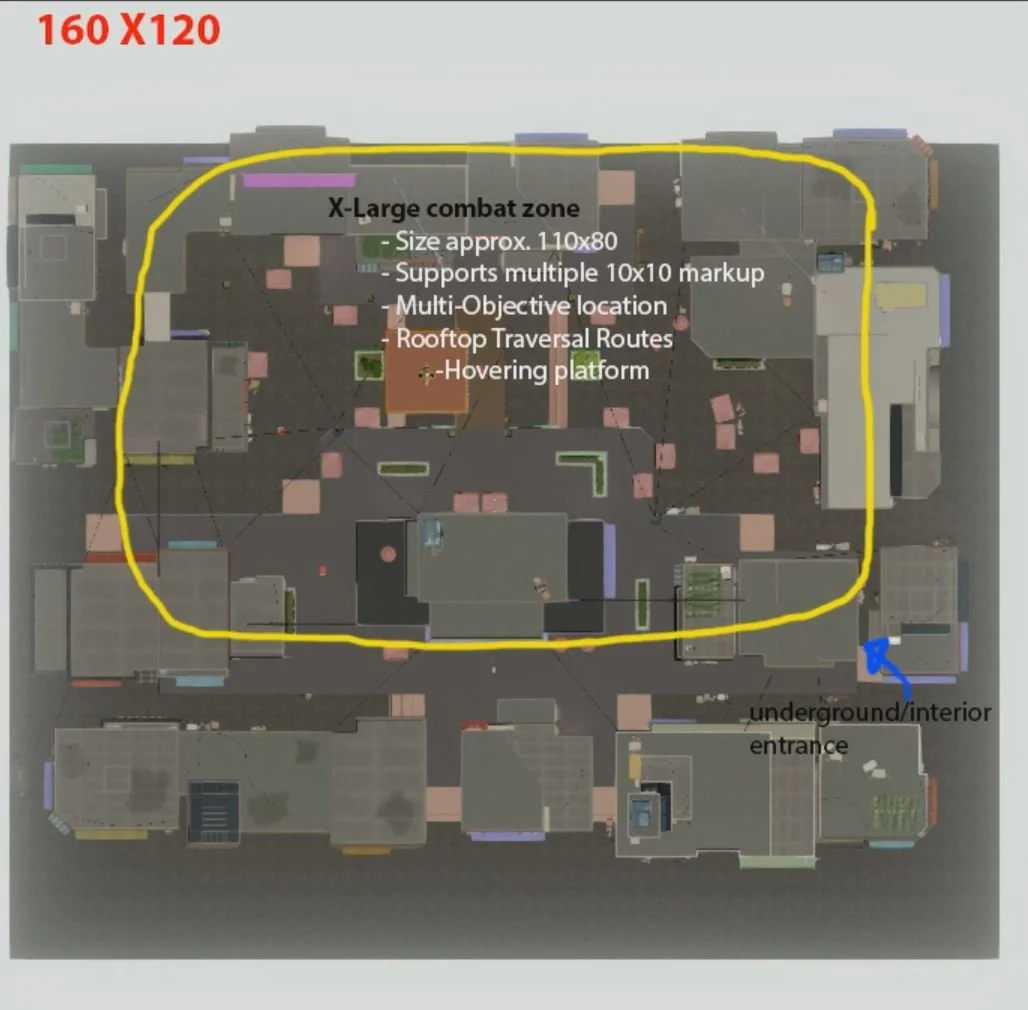The goal for a level designer when designing a city block was to make sure any gameplay space were recognizable as such, fun for general combat and easy to navigate in isolation. Bonus points to linking it to other spaces to other blocks. Gameplay spaces could be tailored for particular missions or for specific types of gameplay events by arranging the markup within the space.